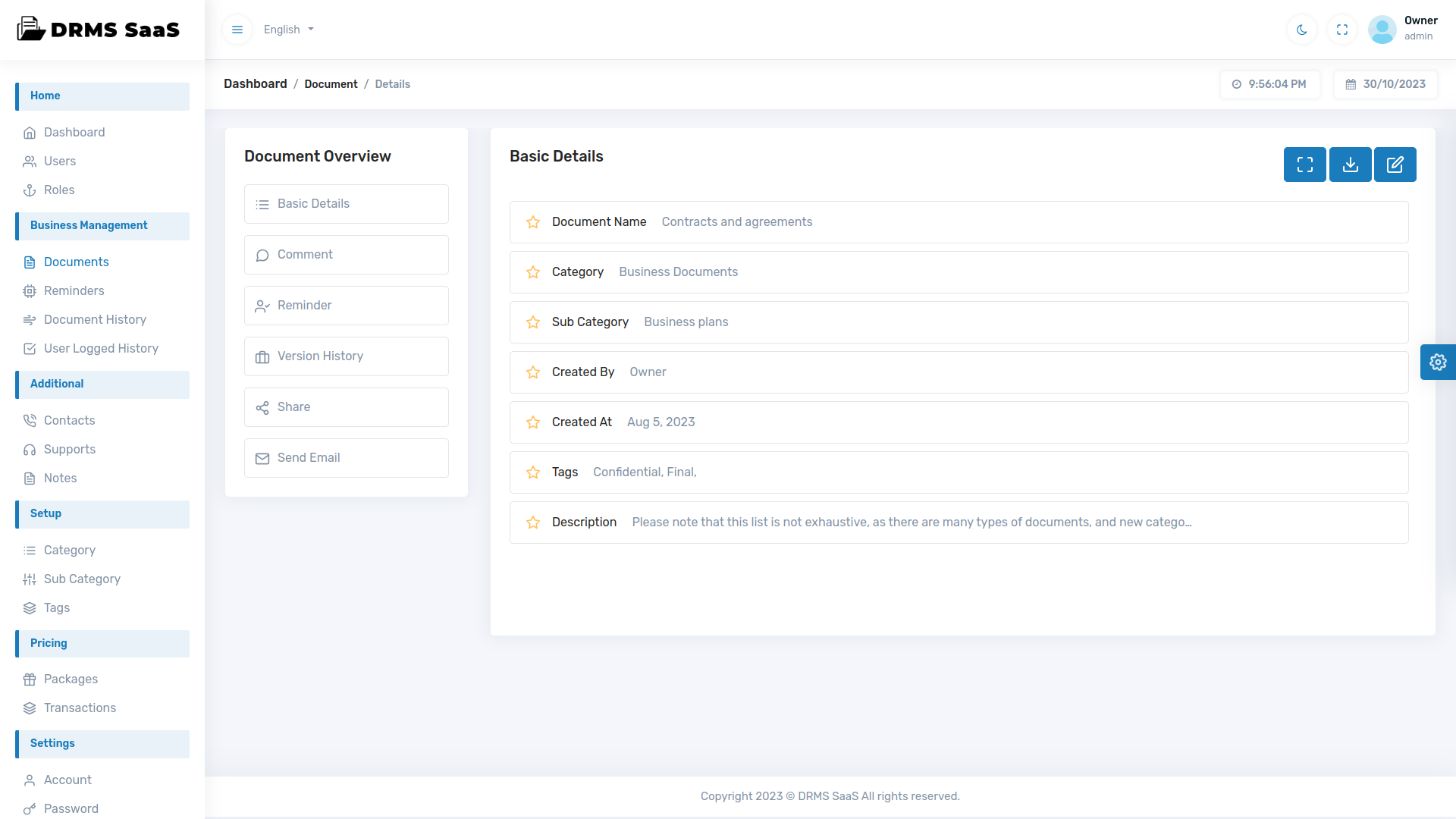 live demoDocument and Records Management System (DRMS SaaS) software refers to the various features and functionalities that the software offers to help organizations manage their digital documents effectively.